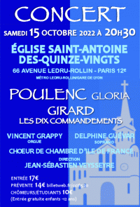 Le Gloria de Françis Poulenc, les Dix Commandements d’ Antony Girard, accompagnés à l’orgue par Vincent Grappy et la soprano Delphine Guevar.