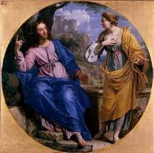 Sous un chaud soleil estival, au puits de Jacob, quelle heureuse providence l’amenant ! Une femme samaritaine, dans sa quête vitale de l’eau, rencontre le Maître-même de la vie : le Christ Jésus. Elle ne le connaissait pas, mais le voit à l’abord comme un juif quelconque, un Seigneur, un prophète, avant de réaliser au bout d’un long apprentissage que cet homme, pas ordinaires, « sait tout » d’elle, et qu’il est le Christ. Dans ce face-à-face méridien, se découvre à nos yeux une double soif : la soif de Dieu face à la soif de l’Homme. De son côté, Jésus dit : « Donne-moi à boire » (Jn 4, 7) et la samaritaine : « Seigneur, donne-moi de cette eau, que je n’aie plus soif » (Jn 4, 15).
